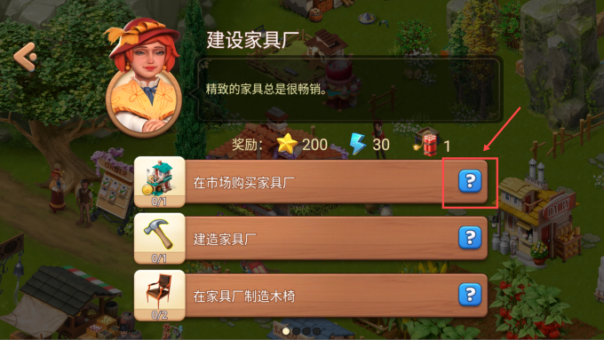 如果游玩中,您对任务所需物品存在疑惑,可以通过点击任务面板右侧的蓝色的问号图标,查看该任务的提示信息,同时有箭头指引您完成该任务所需到达的具体位置。