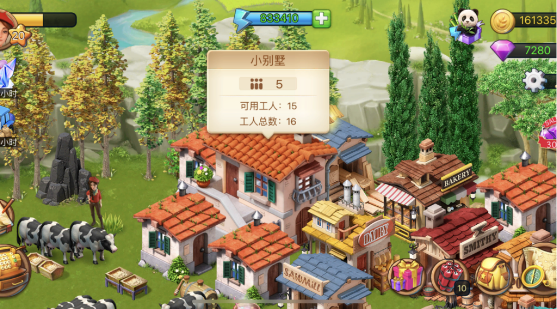 点击农场上的任意住宅建筑,您就可以查看到农场已有的工人人数了,例如: